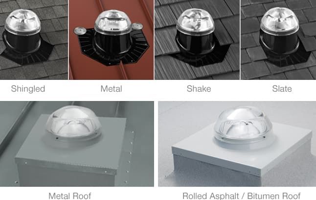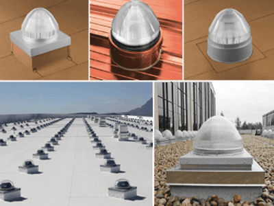 The Brighten Up Series has leak-proof options to mount its domes on any roof type, from curb caps to flashings for both pitched and non-pitched roofs.