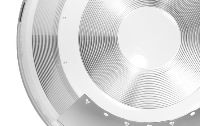 The M74 DS uses unique bottom assembly components to deliver maximum daylight in high-ceiling applications, from the prismatic diffuser to the optional Amplifier, which focuses daylight all the way down to the task area.